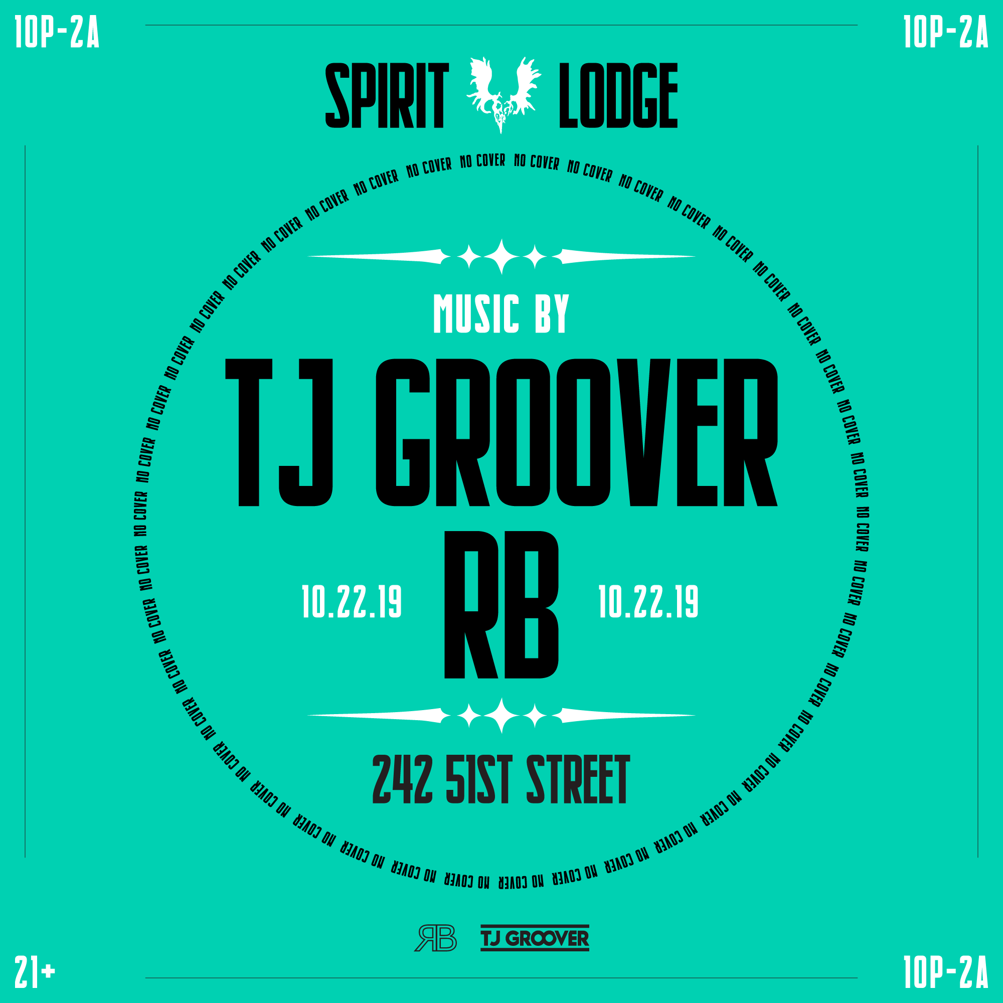 ✚ gCal ✚ iCal Tuesday October 22nd 2019 catch tj groover & RB playing dance music in the Lodge on a Tuesday night after the EarthGang show upstairs. No rules or theme. Just great music. Beat us there.FREE || 10pm || 21+