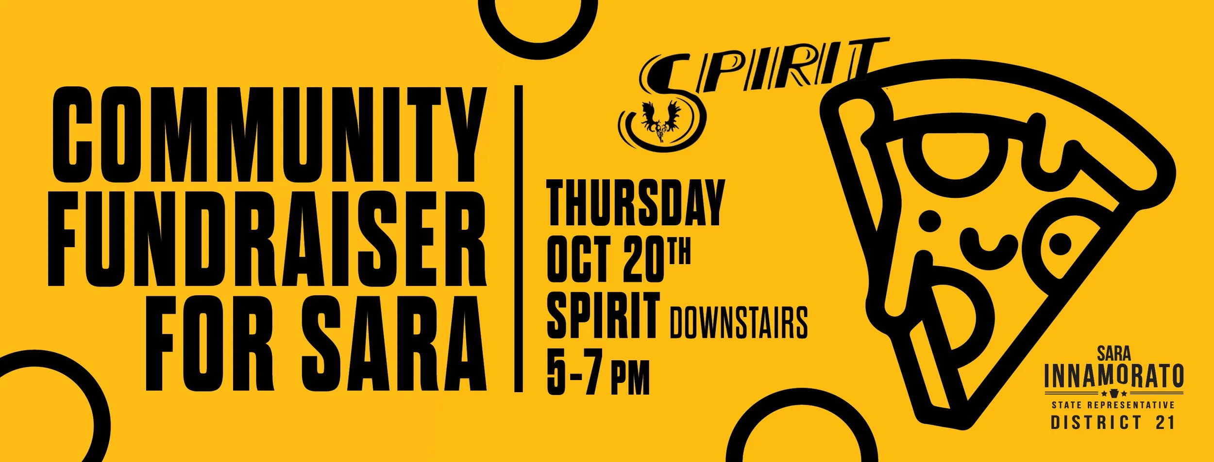 Spirit (map) 242 51st St Pittsburgh, PA, 15201 ✚ gCal ✚ iCal Join us in the Lodge to raise money to support Sara Innamorato's re-election campaign donate here