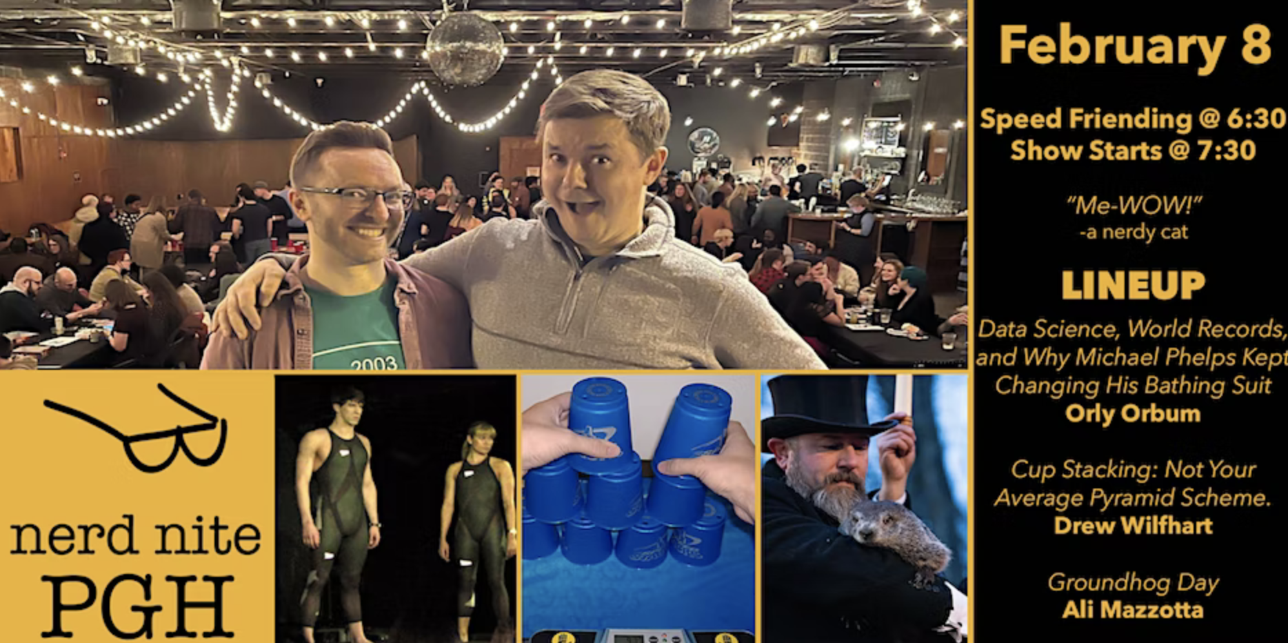 Nerd Nite Pittsburgh is a lecture series that’s a mix between a TED talk, a comedy show, and a social mixer! Speakers present for 15 minutes on a variety of topics related to science and technology, popular culture, history, and other nerdery with a vibe that’s as entertaining as it is academic! Audience members can ask questions, and beforehand there is an entirely optional social game. If you like alcohol, learning about random and interesting things, and meeting other nerds this is for you! Social game starts at 6:30, Doors open for the show at 7:30, show starts at 7:45. If you have a topic you are passionate about and you’d like to be a speaker at a later event get in touch at pittsburgh@nerdnite.com!