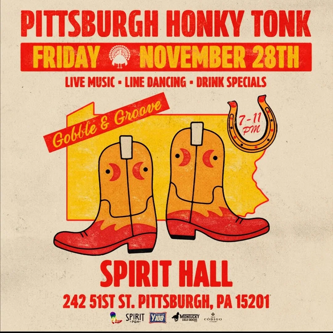 Spirit (map) 242 51st St Pittsburgh, PA, 15201 ✚ gCal ✚ iCal Black Friday Honky Tonk at Spirit Hall!Gobble up and groove on down to Spirit Hall on Black Friday, November 28th. Its gonna be a turkey-tonkin' good time filled with dancing, country music hits, and good vibes!7-11pm21+ get tickets