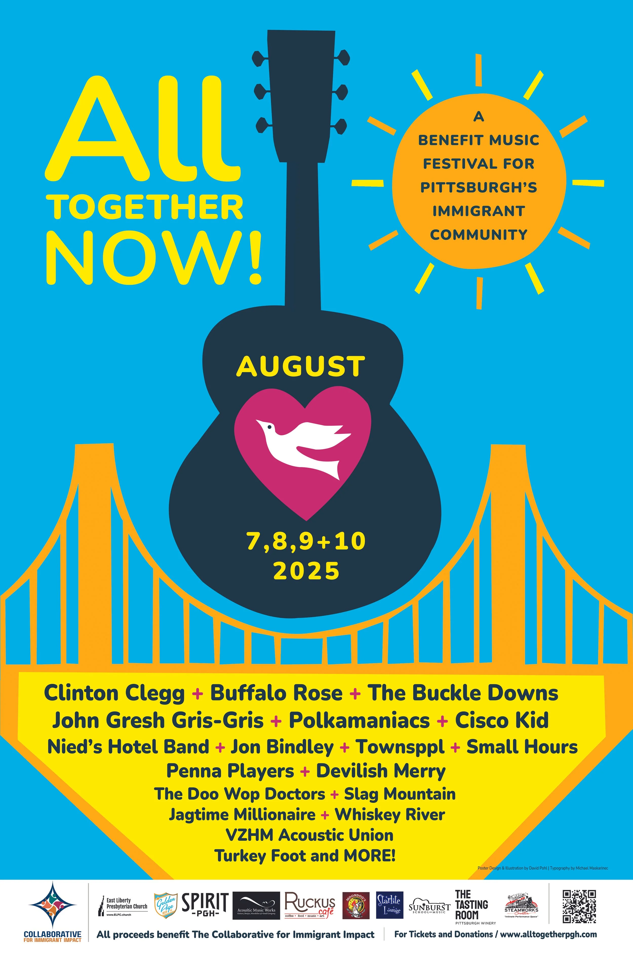 A live music concert benefit in support of Pittsburgh’s immigrant population, with all proceeds going to the Collaborative for Immigrant Impact (a consortium of 20 local groups supporting Pittsburgh area immigrant services).