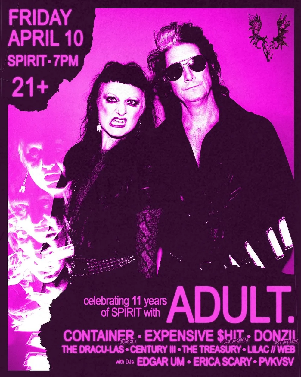 ADULT. is not cooperating. For over 25 years, the dystopian Detroit synth-punk institution founded by Nicola Kuperus and Adam Lee Miller has embodied steadfast frustration, distrust, and apprehension. One might expect the edges to soften with time, but ADULT. is not interested in the comforts of legacy. The duo’s music has never sounded as visceral, urgent, and downright angry as it does on the culminating, uncompromising Kissing Luck Goodbye, their scorched-earth 10th LP and fourth with Dias Records. Builtwith upgraded gear and a whole new library of sounds, the material is crushingly dynamic, louder yet clearer, with Kuperus’ commanding delivery given greater prominence in the mix, outlining an arsenal of vivid, caustic calls, chants, and musings. Laughter, whether in the lyrics or as a possessed presence, serves as a leitmotif that speaks to the menacing absurdity of modern times. “THE CHAOS IS WHAT THEY WANT,” she sings on “R U 4 $ale”, doubling as a declaration of intent: to meet a burning world of greed and disarray with defiant, masterfully assembled chaos. “You have two choices in this hellscape we're living in right now, which is either fight or be depressed,” says Miller. “Either one is okay. But, you know, the choice was simple.”